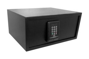 Caja de Seguridad electrónica para hotelería, Resistente, compacta y elegante para elinterior en habitaciones, diseñada para proteger objetos de valor como joyas, documentos y dispositivos electrónicos. Fabricada con materiales resistentes, cuenta con un sistema de cierre electrónico con código personalizado o llave de alta seguridad. Su diseño funcionalse adapta a cualquier habitación, con opciones de montaje en pared o suelo.